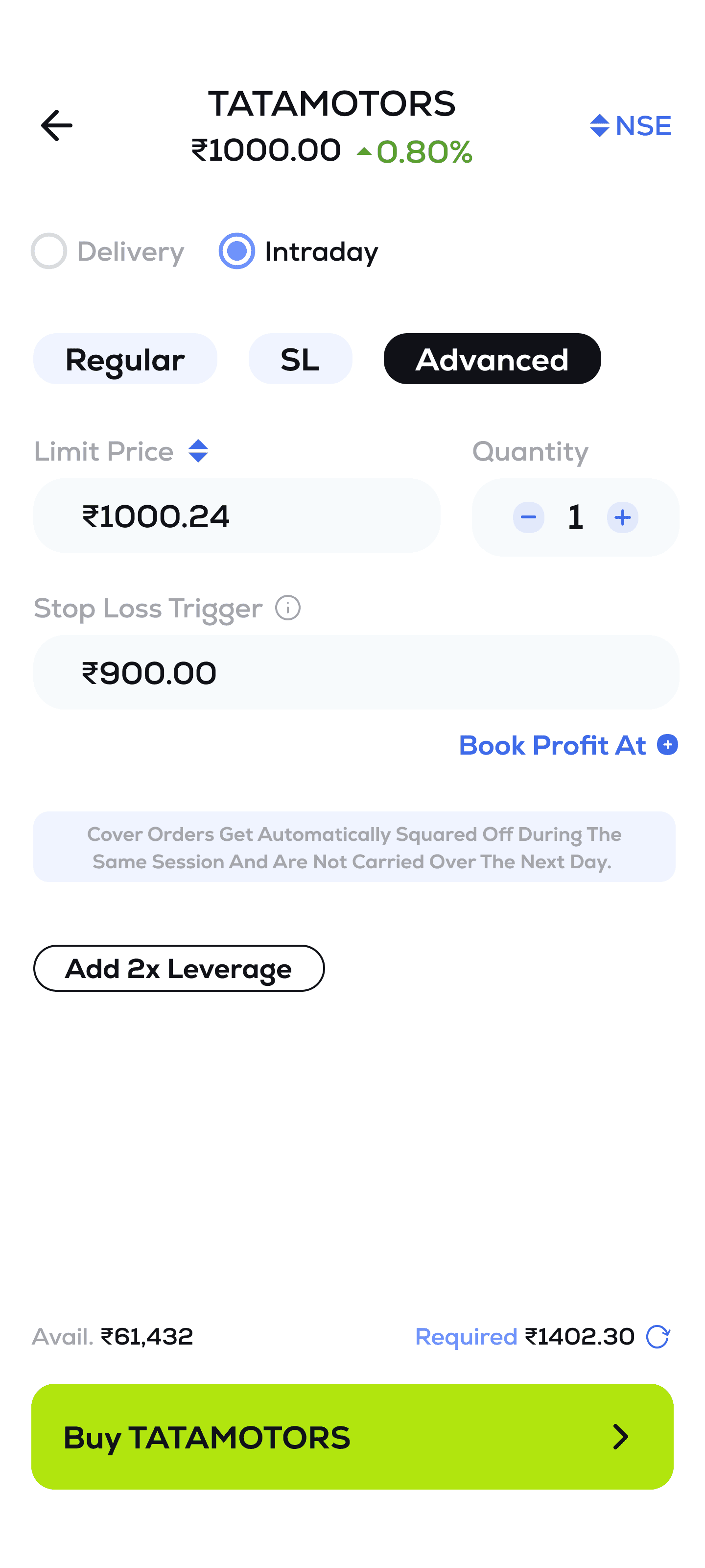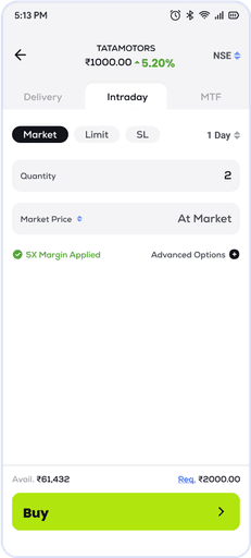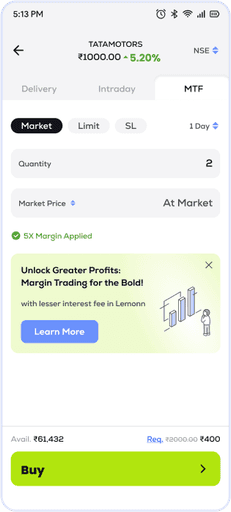 Case 1: MTF (Margin traded funds) was in a scope of not being called out upfront in the UI and the margin can be added to the stock, going forward with this: