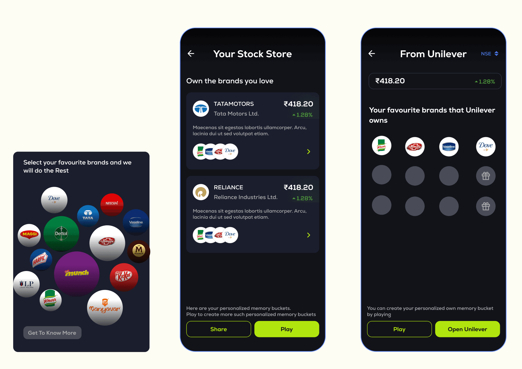 User scenario: Any new user is overwhelmed by landing on a stocks app, for them making a decision to invest is a big step but what next? They need something comforting, which engages them with the UI, I will call it a developing interest phase.