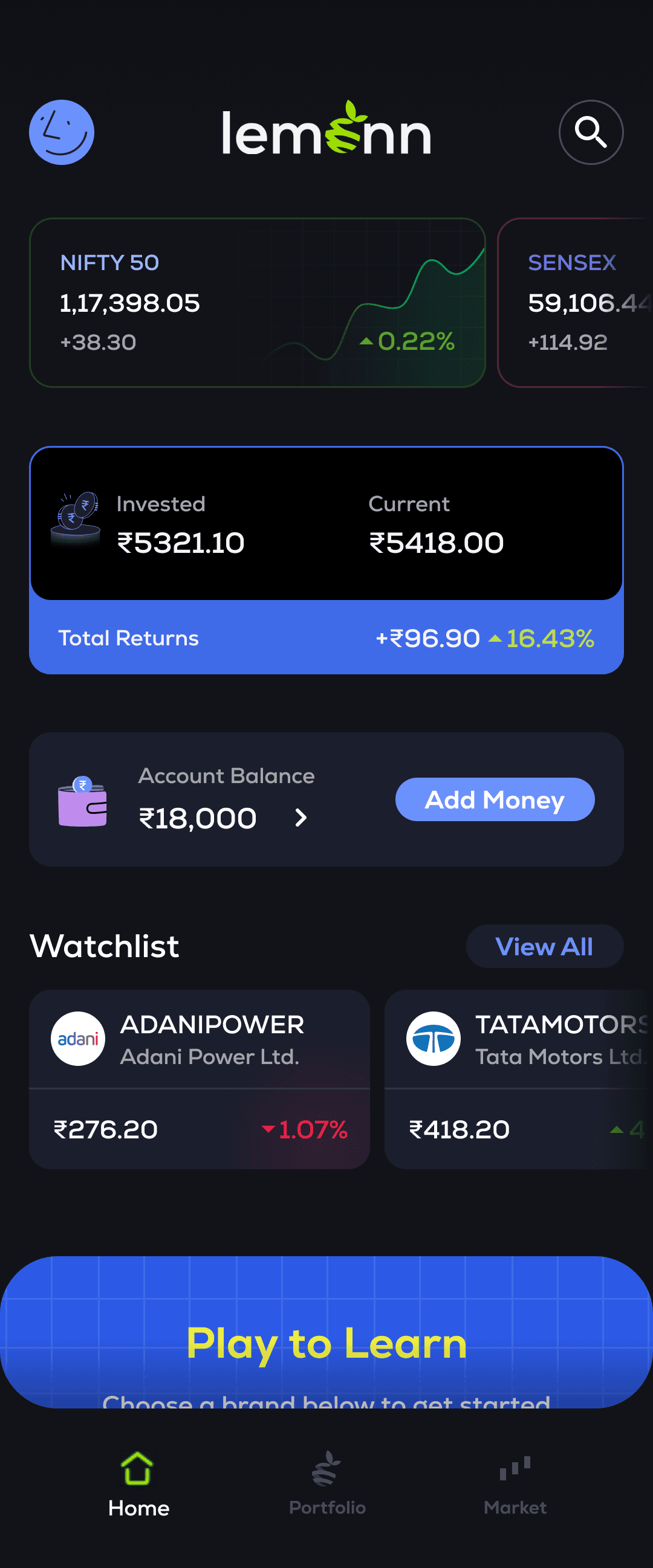 User scenario: Any new user is overwhelmed by landing on a stocks app, for them making a decision to invest is a big step but what next? They need something comforting, which engages them with the UI, I will call it a developing interest phase.