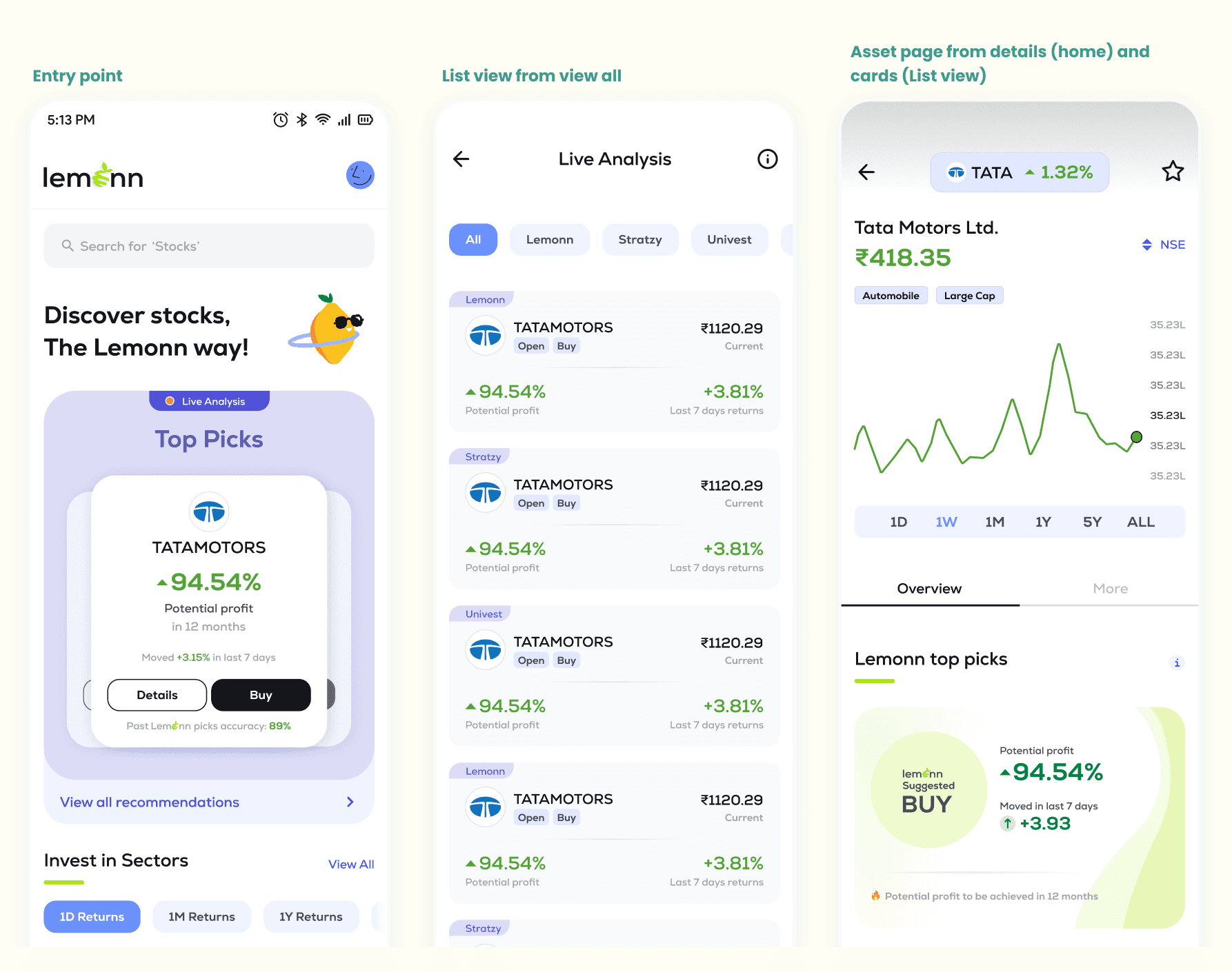 In house research analyst : Giving users options to make decisions based on potential profit backed by Research and analysis.